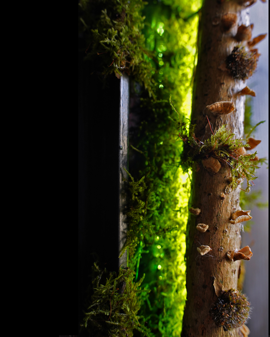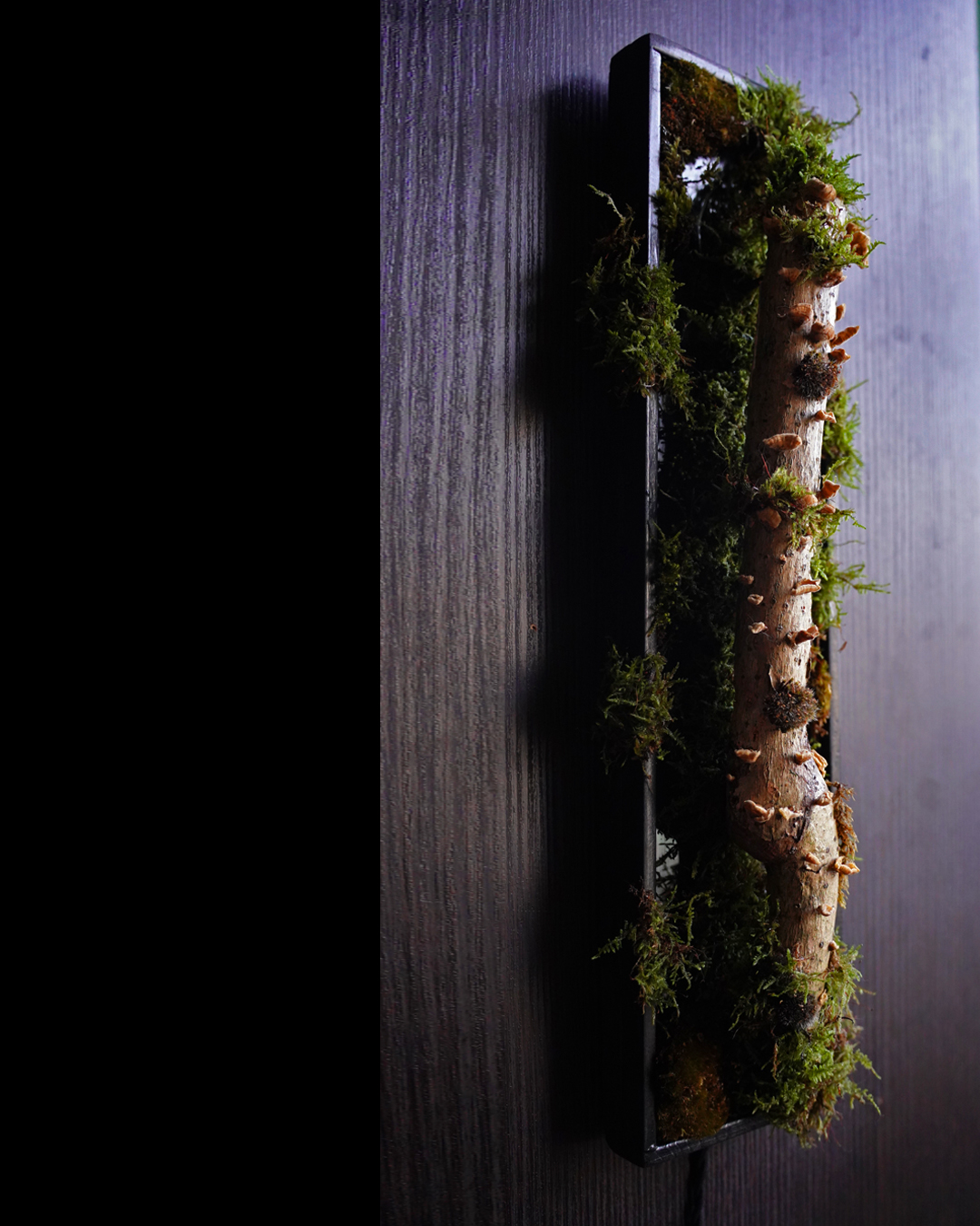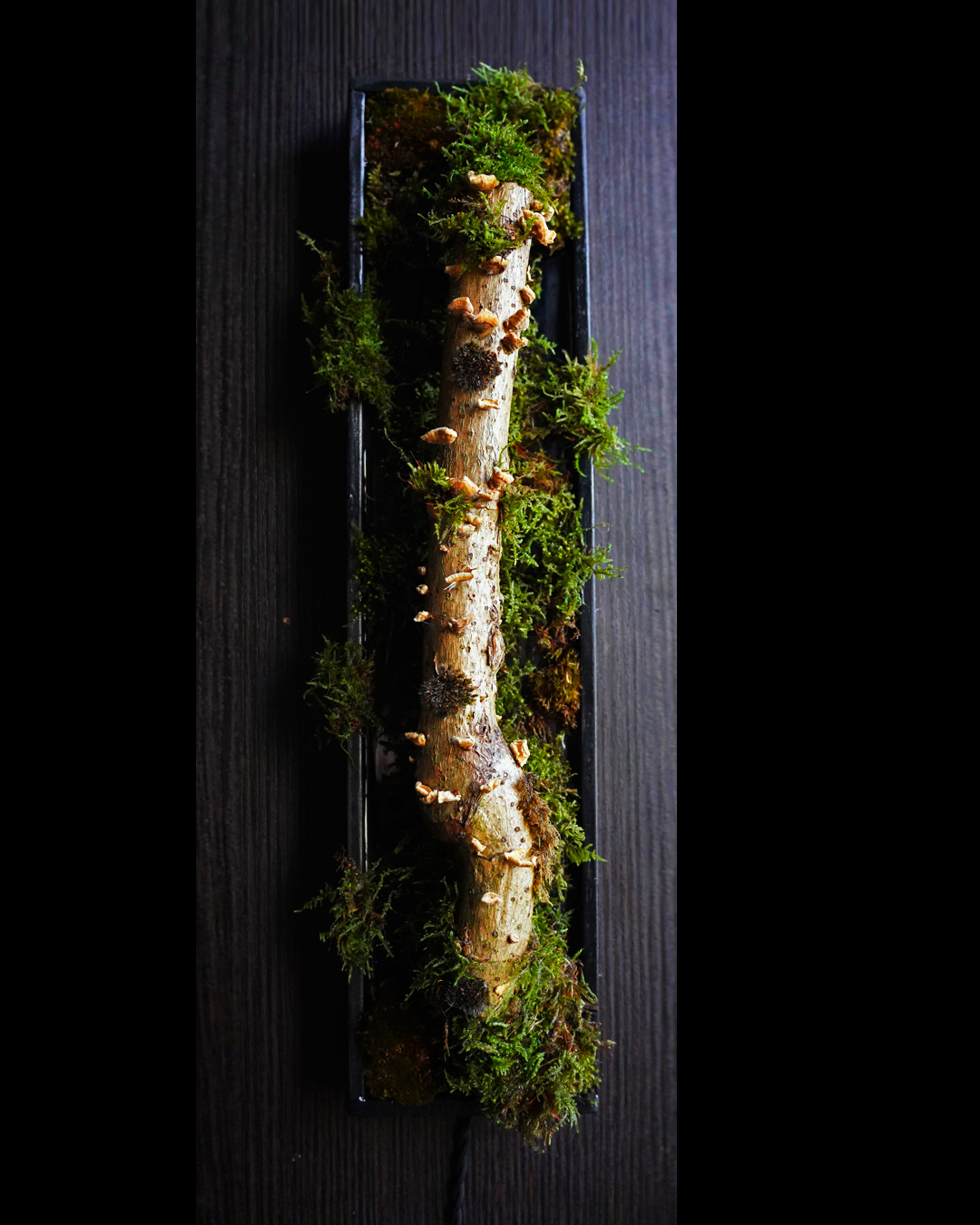 Materials : Natural wood branch. Stabilized moss. Epoxy resin.