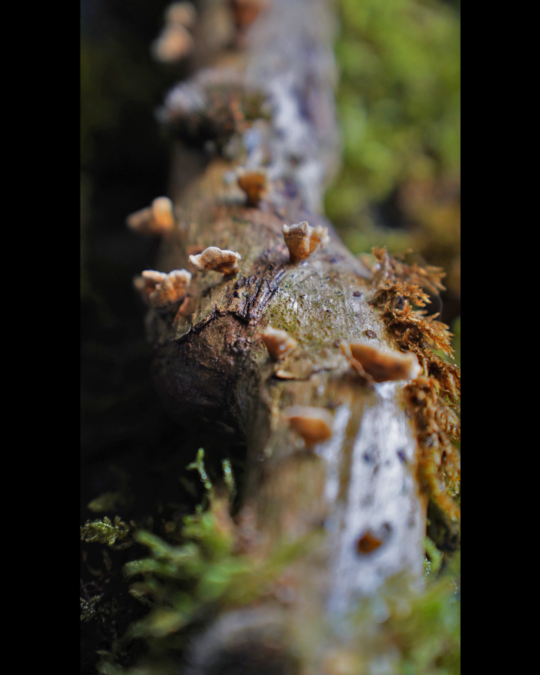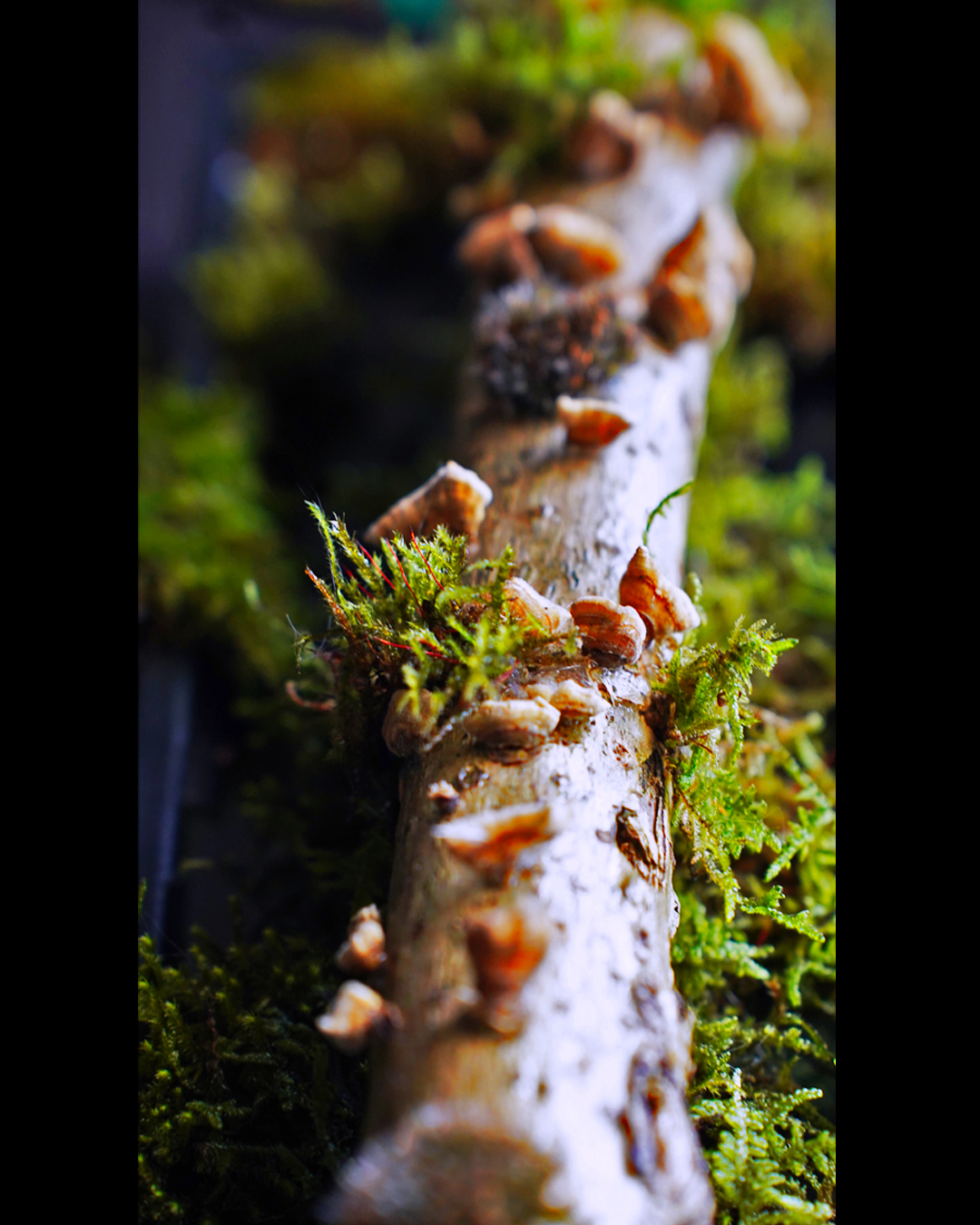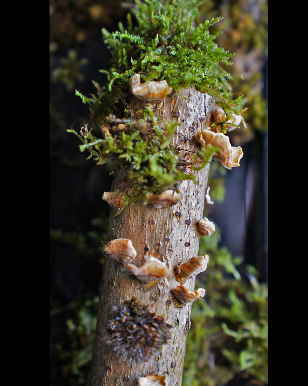 Naturally dried wood mushrooms on the branch give the piece a distinctive character, more vividly expressing the true, living nature of the forest.